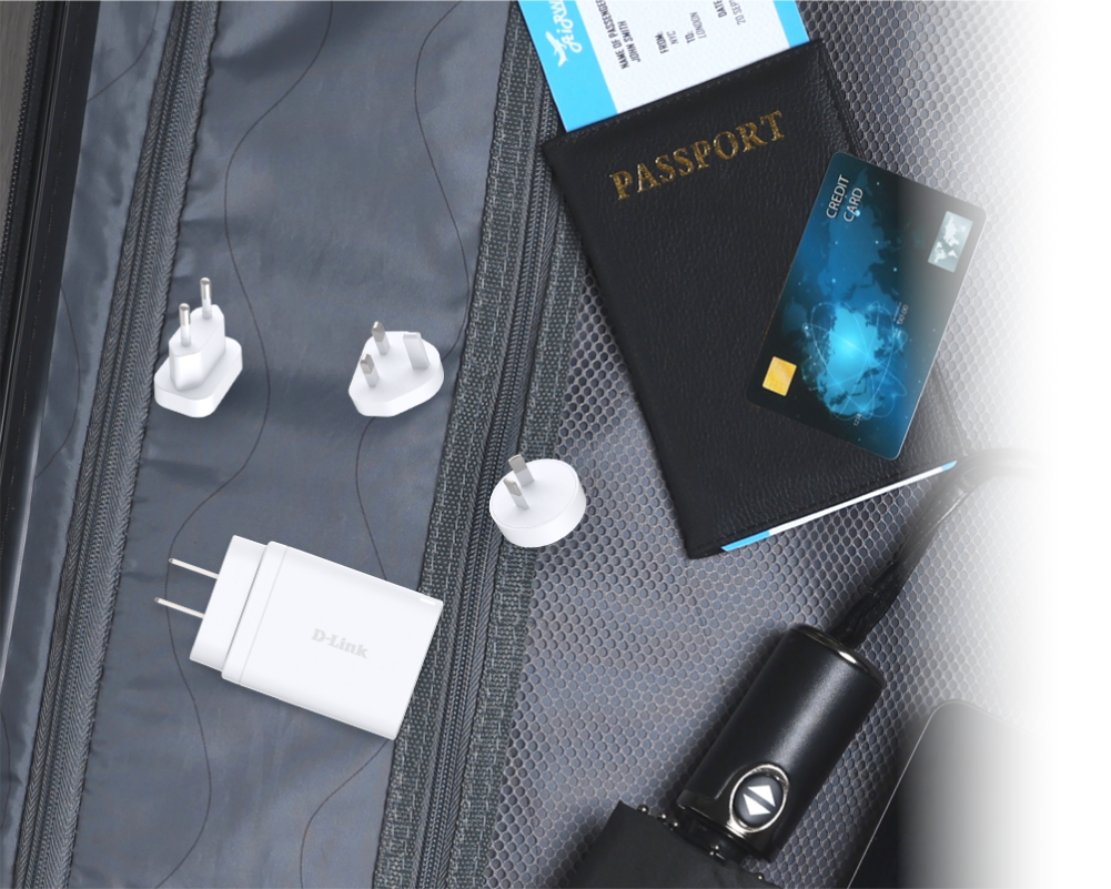 From morning meetings to evening downtime, the D-Link 65W GaN Charger (DCP-651) helps you keep your devices powered up. With two USB-C ports and one USB-A port, you can charge your laptop, phone, and smartwatch all at once*, at home, at work, or wherever the day takes you. One compact charger. Maximum productivity.