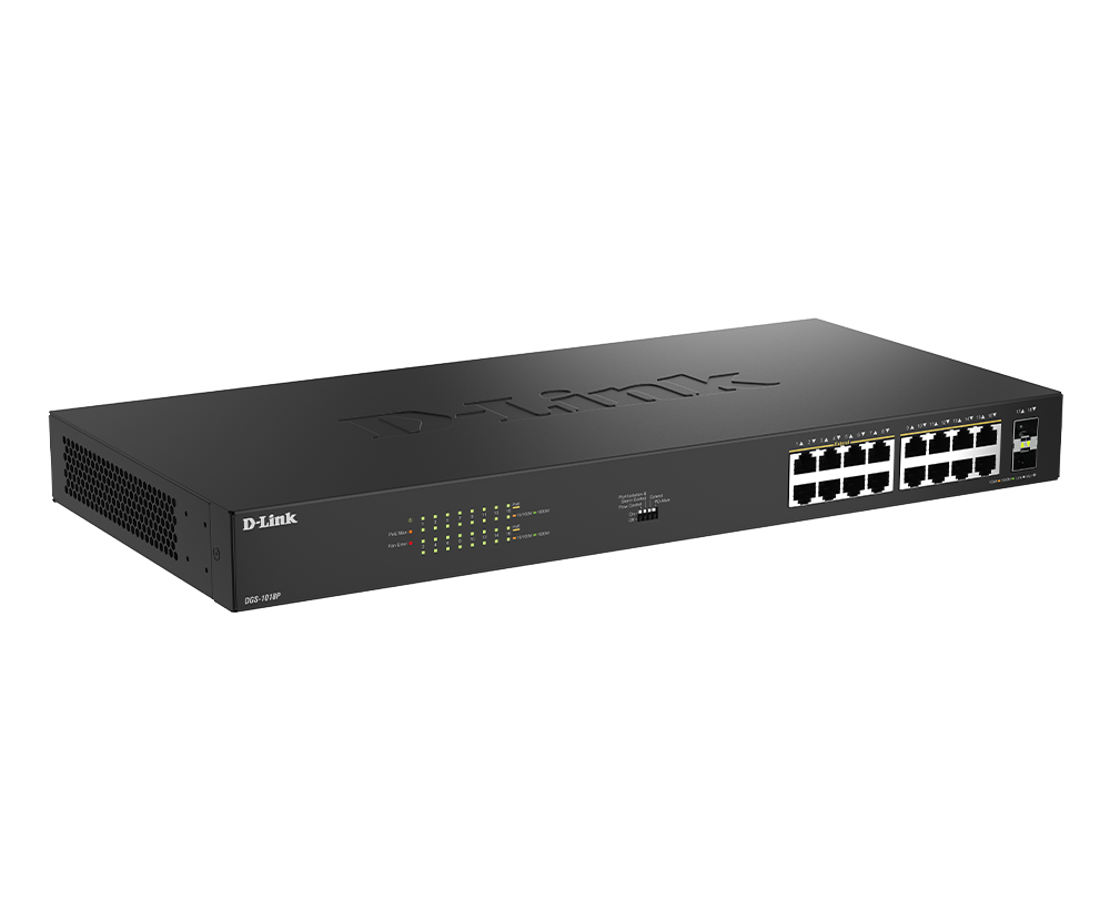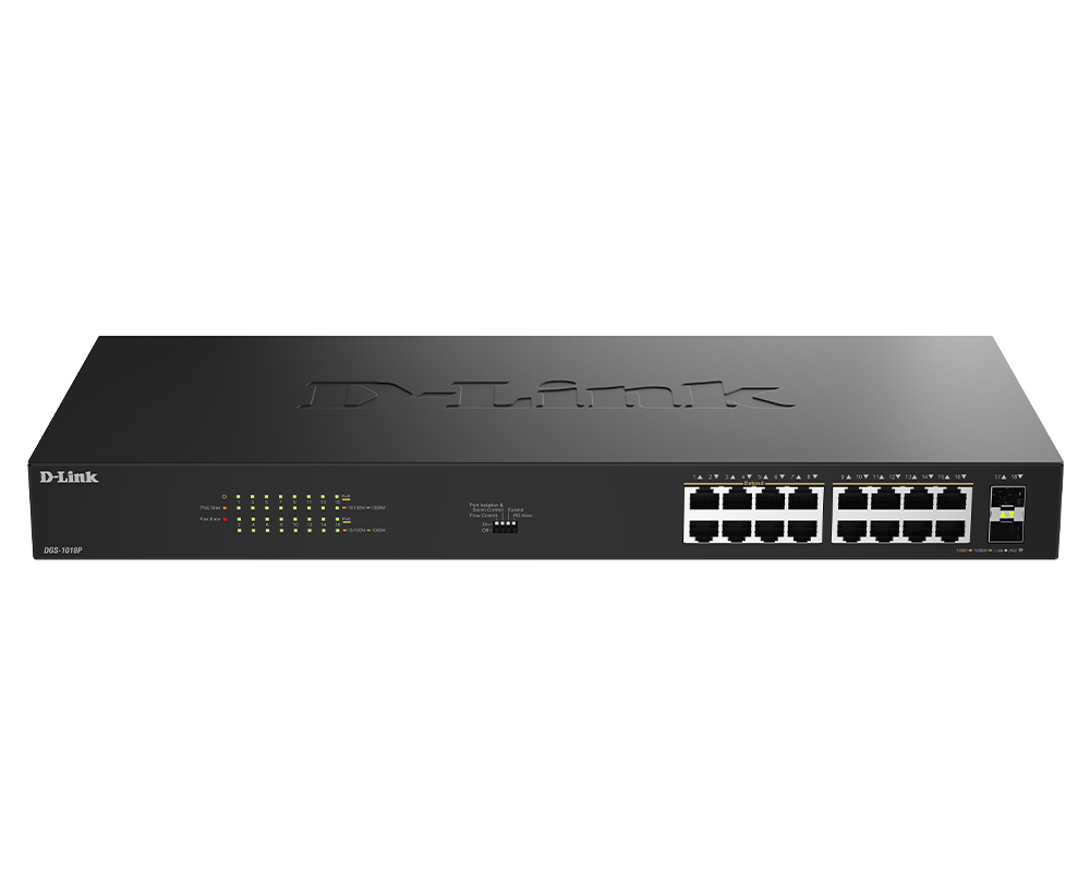The D-Link DGS-1018P 16-Port Unmanaged PoE+ Switch with 2 SFP Ports gives you built-in physical controls to instantly adjust key settings without logging into a web interface. You can quickly enable features like long-range PoE for distances up to 250 meters, automatic reboot for unresponsive devices, port isolation for better security, and storm or flow control for improved stability.* It’s a fast, technician-free way to adapt your network right at the switch—ideal for dynamic environments where time and simplicity matter.