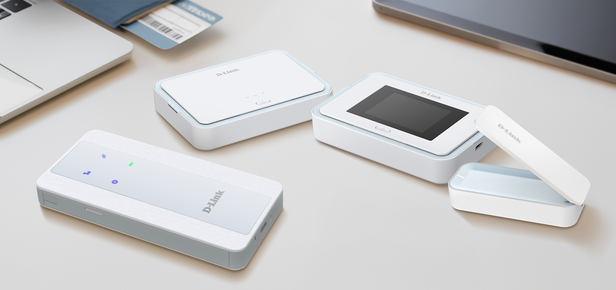 (Image: D-Link 5G Mobile Access Series, including F518, DBR-330-G, F530 and D501 from left to right.)