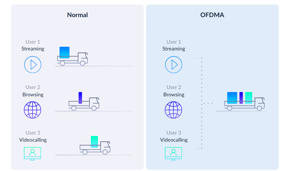 Small data packets destined for multiple devices are transmitted together and never have to queue up again. Perfect for bandwidth-hungry devices battling for bandwidth.