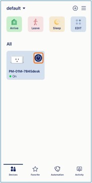 步驟 2: 前往智慧插座所屬的位置首頁,點選裝置頁面上的電源圖示,即可開啟或關閉插座。此操作可透過本地或遠端進行。