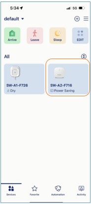 步驟 1:開啟 AQUILA PRO AI App,點選 SW-A2 裝置以進入裝置管理頁面。