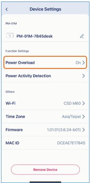「電力過載」功能可協助您保護連接的裝置,確保用電安全。當智慧插座偵測到連接的裝置超過您自訂的最大瓦數上限時,將會自動執行以下動作: