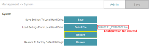 Step 4: To restore your configuration, click the Select File button and select your configuration backup file. Once selected, click Restore.